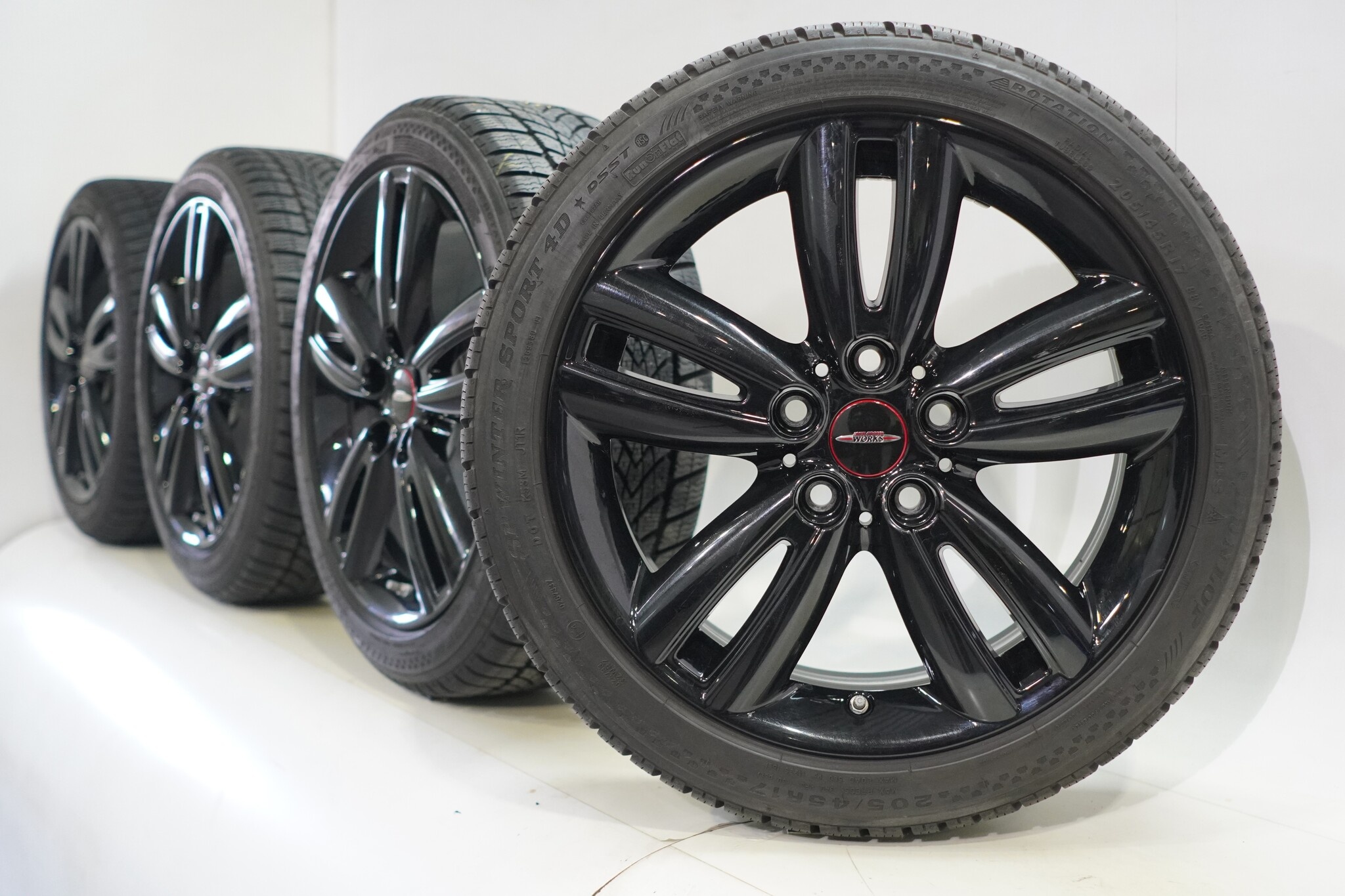 Originele wielset van Mini, styling JCW562, 17 inch velgen met Dunlop SPWintersport 4D Runflat Winterbanden. Deze velgen zijn originele velgen van het merk Mini en geschikt voor: Mini Cooper / S / One / Cabrio F55 F56 F57.