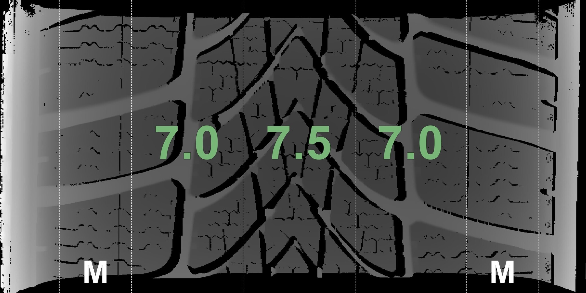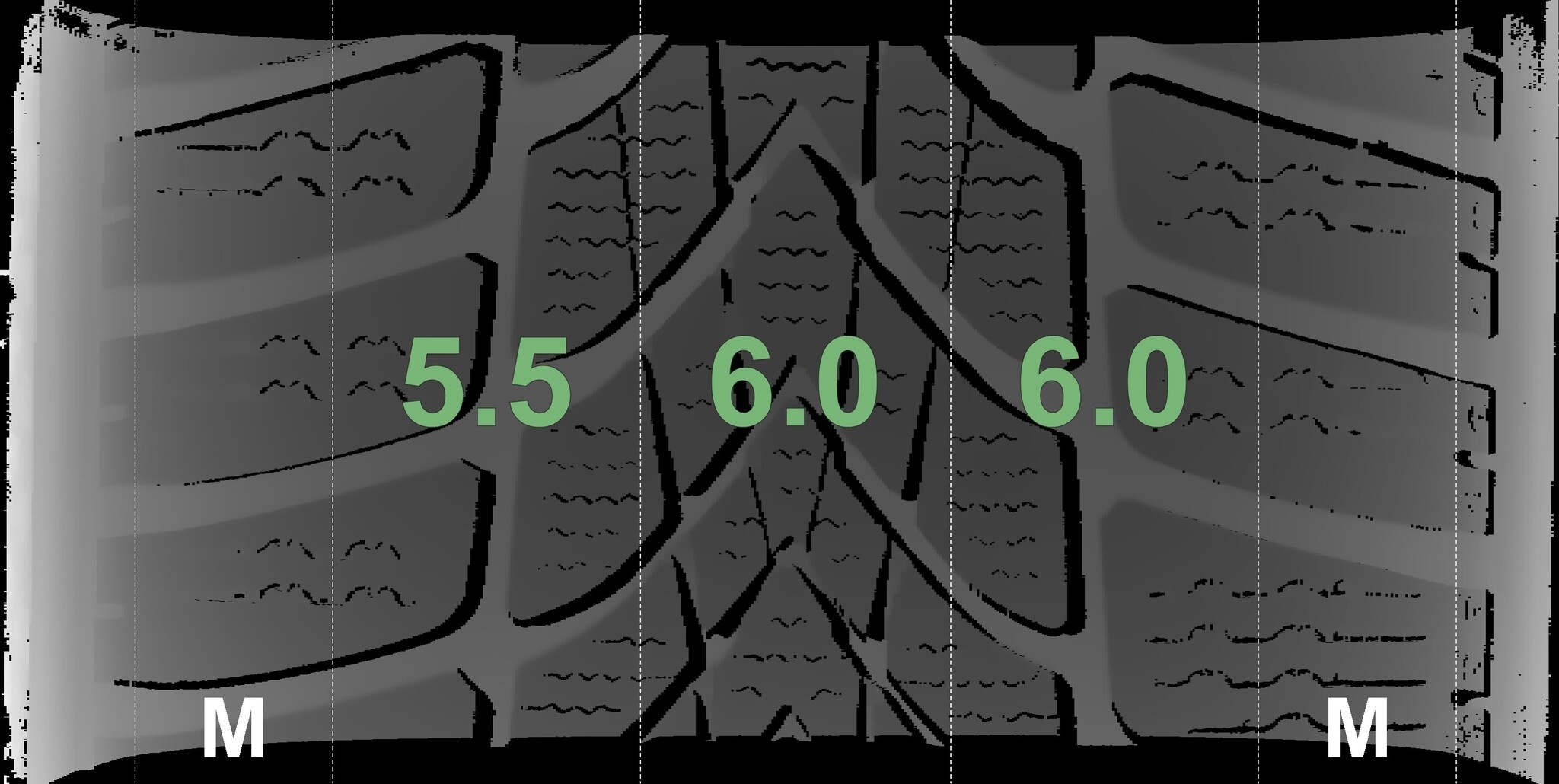 De gemeten profieldieptes en de details van de velgen zijn hierboven weergegeven.