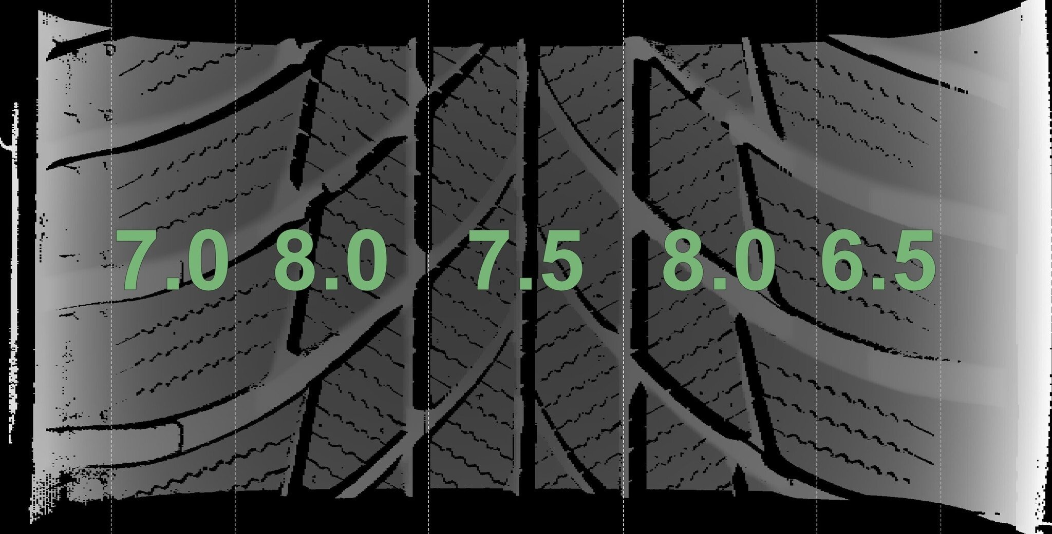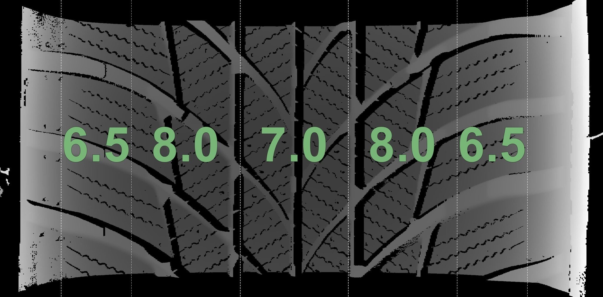 De gemeten profieldieptes en de details van de velgen zijn hierboven weergegeven.