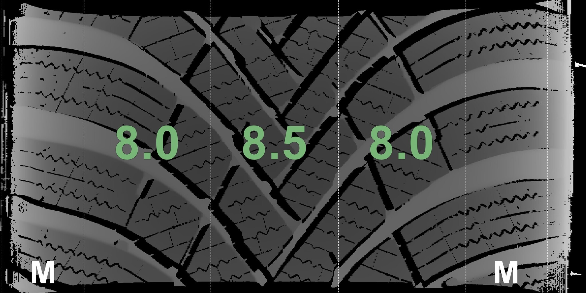 Conditie | Profieldiepte | DOT | Links Achter | Demo nopjes nog zichtbaar | 8.0 mm | 4124 |