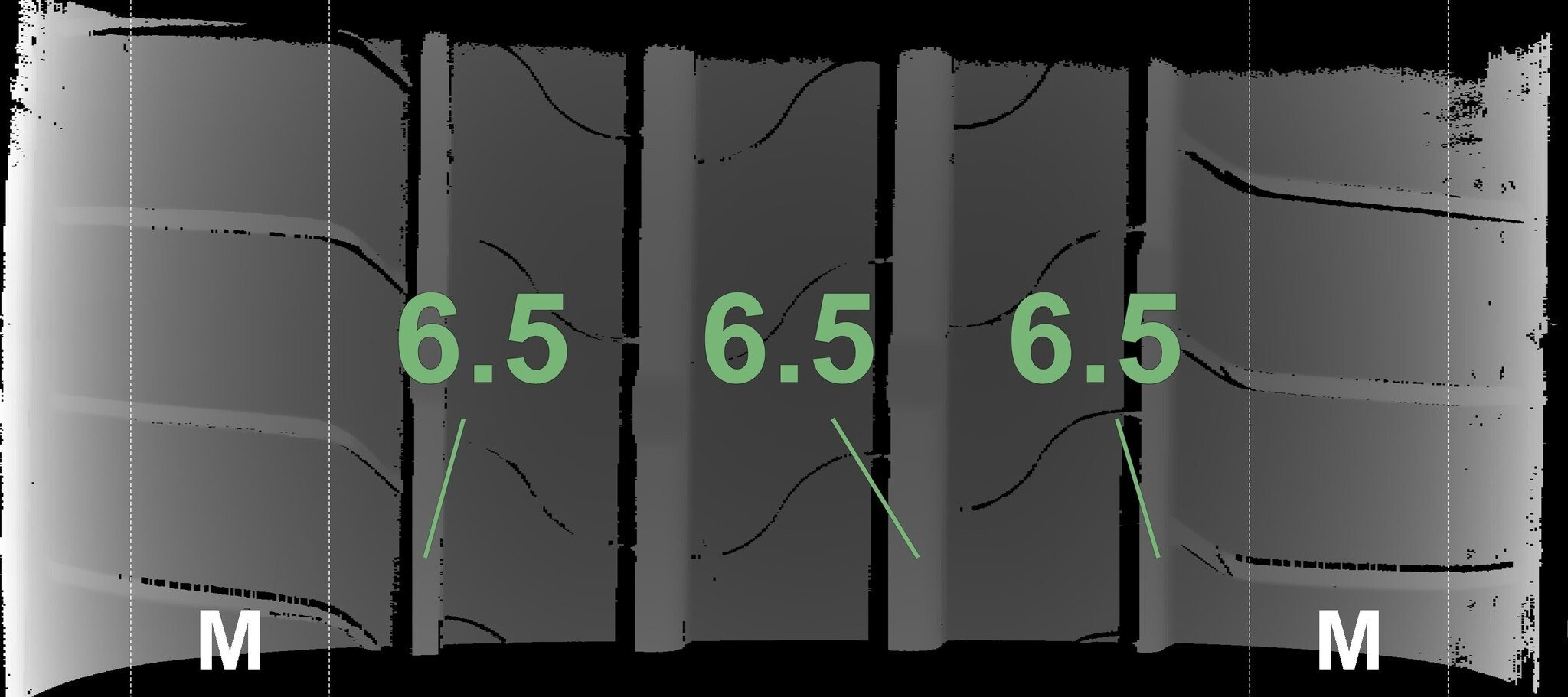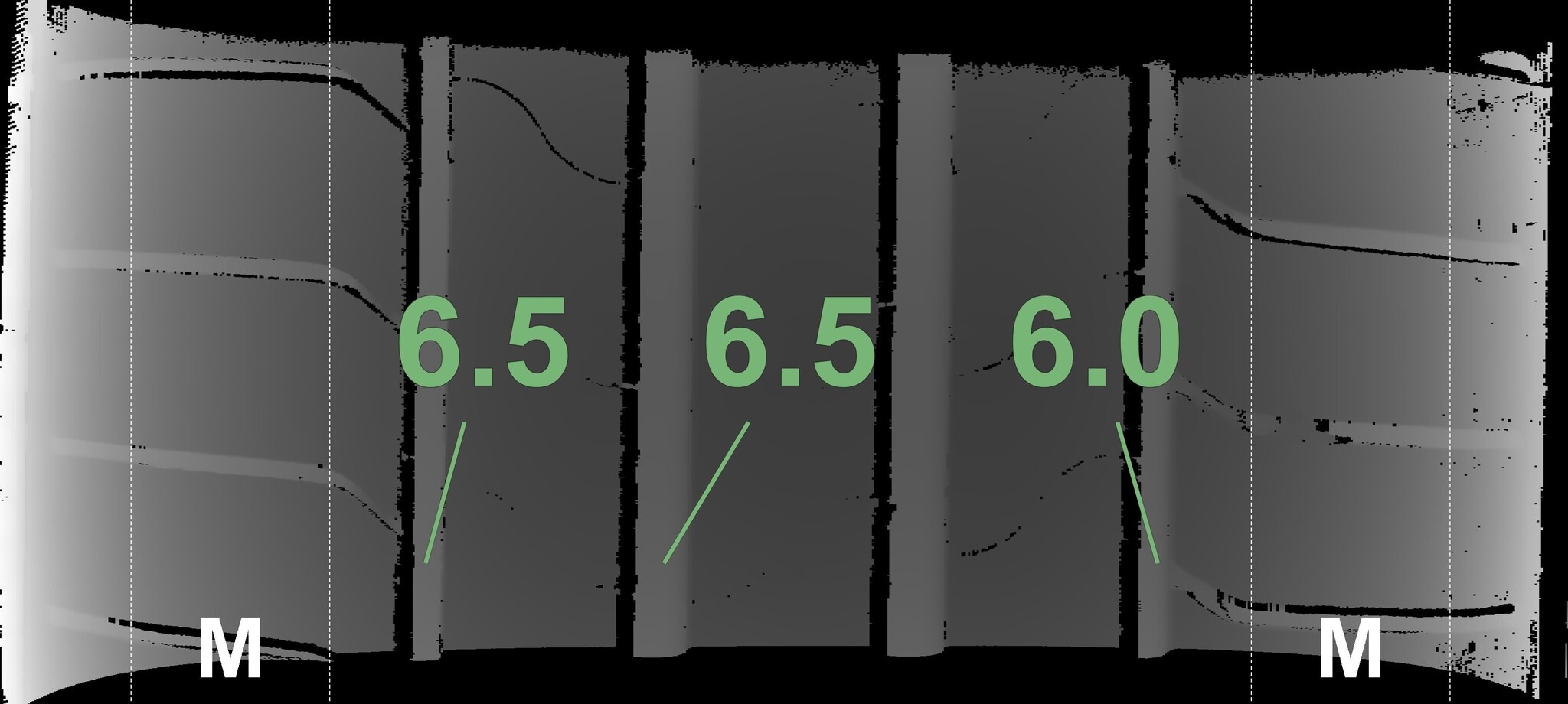 De gemeten profieldieptes en de details van de velgen zijn hierboven weergegeven.